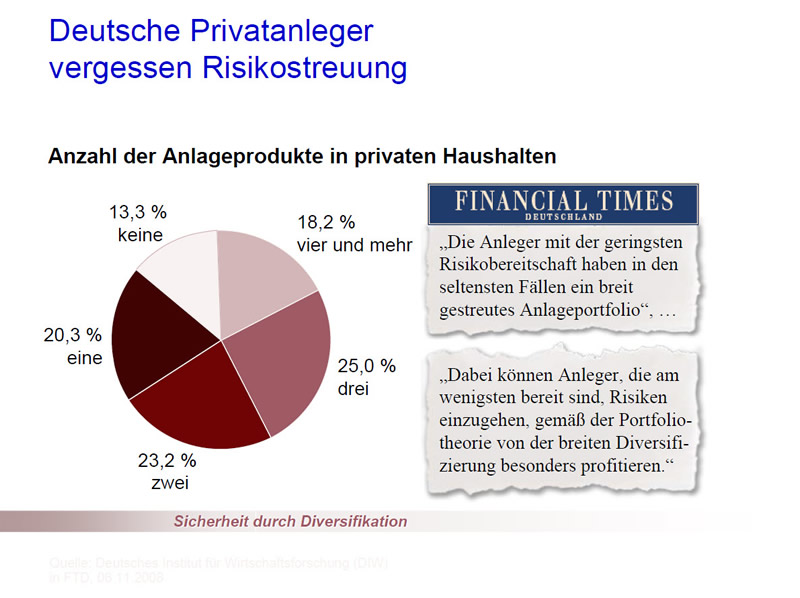 Die Portfoliotheorie nach Nobelpreisträger Markowitz hat nachgewiesen, Vermögensstreuung erhöht Rendite und senkt Risiko.