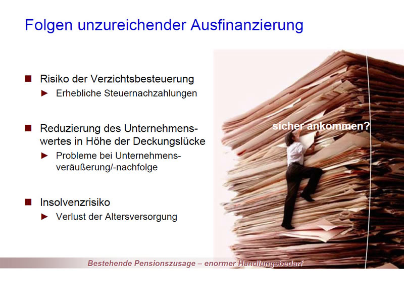 Dies ist besonders wichtig, wenn es darum geht, bestehende Pensionszusagen, die unzureichend finanziert worden sind, nachzufinanzieren.